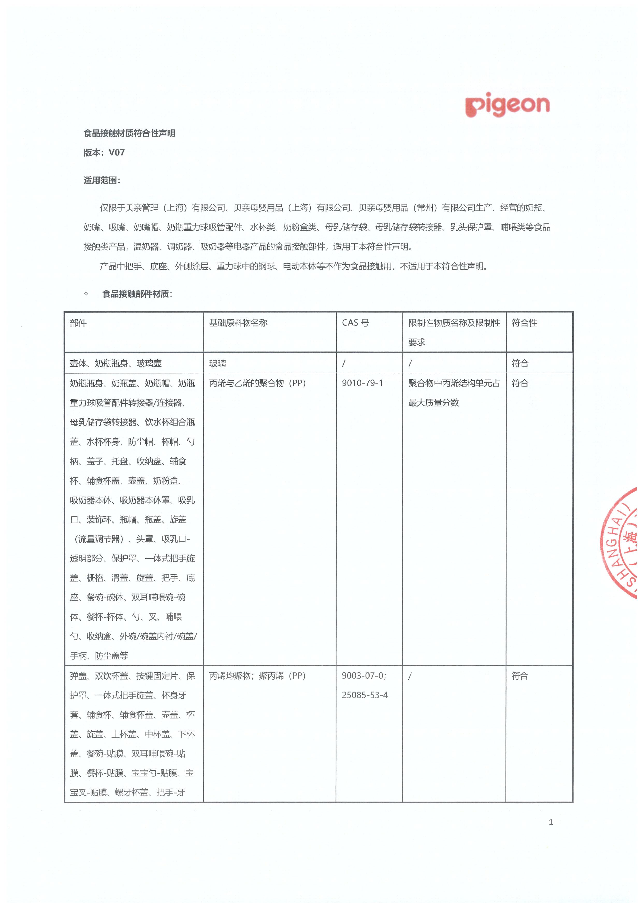 符合性声明 | 挚爱天生 :: 贝亲管理(上海)有限公司