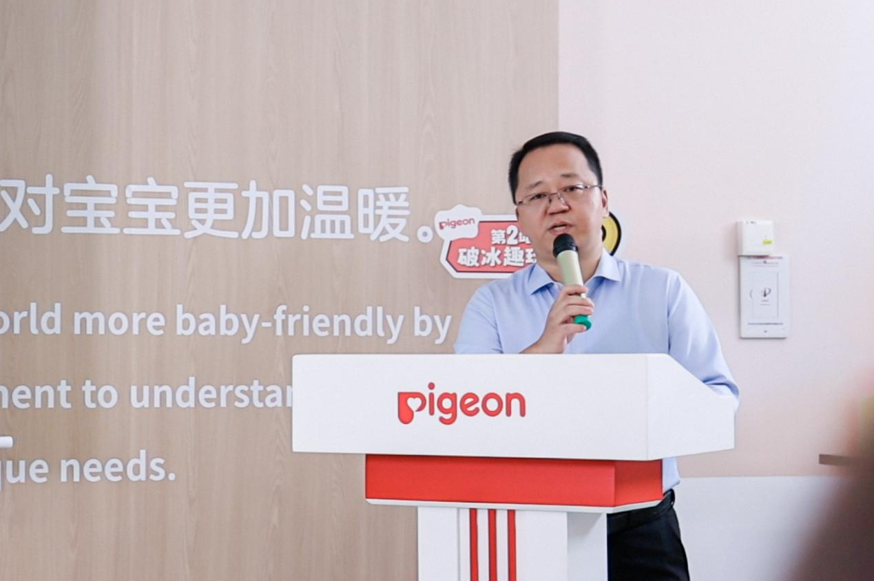 活动开始前,贝亲总经理董俊先生向到场的亲子家庭致以热情问候,揭开今天的工厂探索之旅的序幕。在欢乐的氛围中,每个小朋友都收到了一枚专属的“一日厂长徽章”。小朋友们将带着这枚徽章,在互动关卡中快乐闯关,完成各项趣味任务收获小红花奖励,体验寓教于乐的探索之旅。