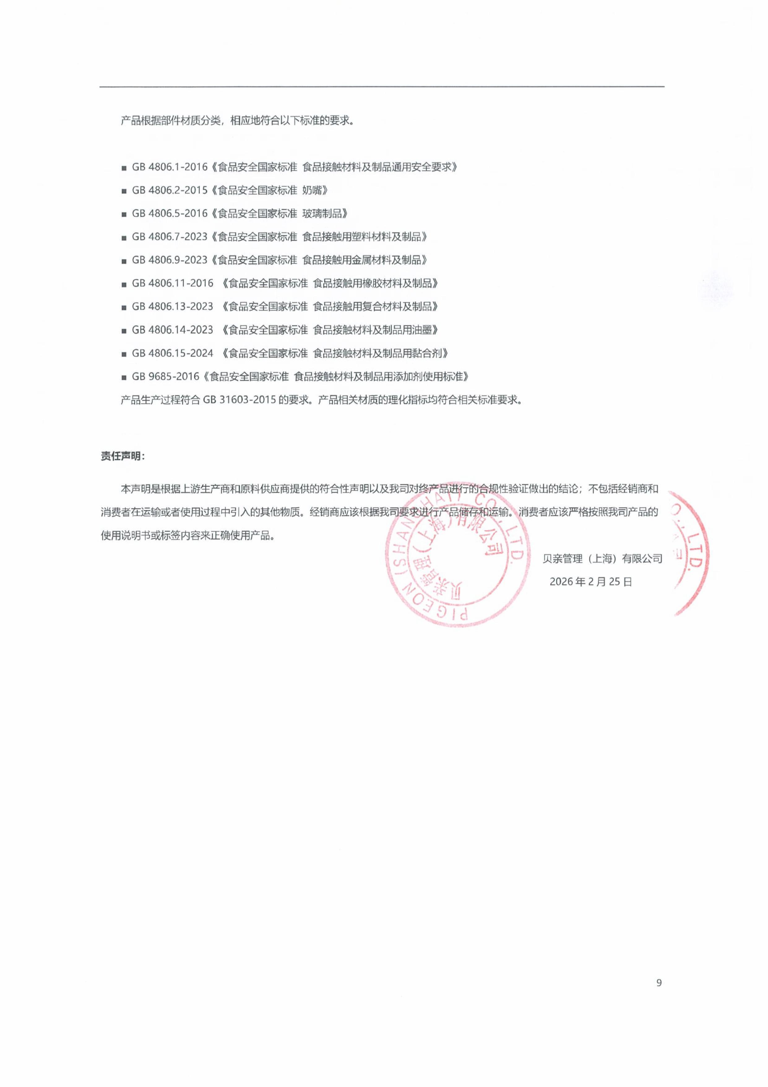 符合性声明 | 挚爱天生 :: 贝亲管理(上海)有限公司
